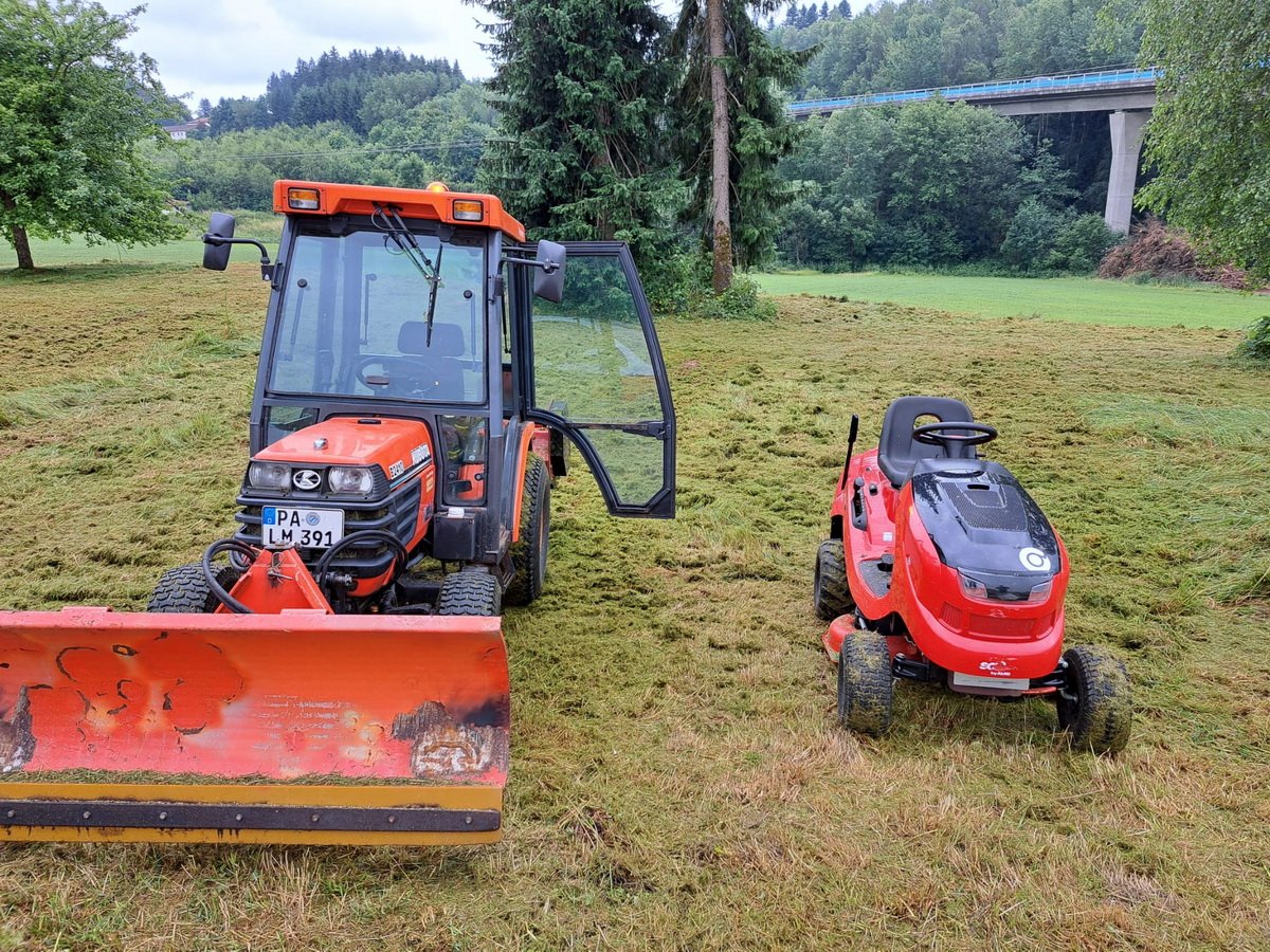 Top ausgerüstet erledigen wir Rasenschnitt und Mulcharbeiten mit oder ohne Verbringung zur Kompostierung.